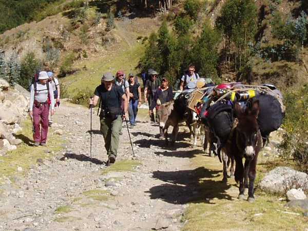 Karavana do základního tábora Ishinca. Musím uvést na pravou míru, že nesedím na oslíku.